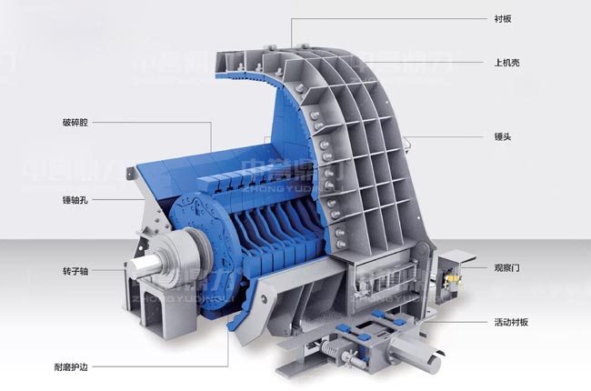 中譽鼎力反擊式錘破采用活動襯板設計,避免篦條反擊錘破的缺點外,還增加了設備自身性能及使用便捷性: