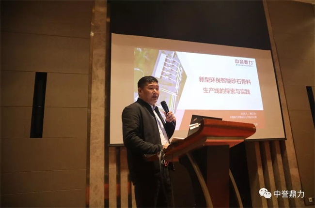 中譽(yù)鼎力作為砂石行業(yè)內(nèi)提倡環(huán)保、集約、智能化生產(chǎn)發(fā)展的企業(yè),在積推動(dòng)各地礦山資源整合,提倡規(guī)范環(huán)保制砂。會(huì)議現(xiàn)場(chǎng),中譽(yù)鼎力裝備設(shè)計(jì)公司副總經(jīng)理兼大客戶項(xiàng)目部總經(jīng)理原文秋做了“環(huán)保智能砂石骨料生產(chǎn)線的探索與實(shí)踐”的主旨演講。