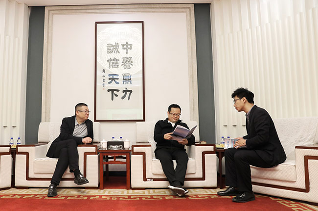 中譽(yù)鼎力智能裝備有限公司總經(jīng)理?xiàng)钋⑿l(wèi)輝市遠(yuǎn)大新材料有限公司總經(jīng)理張志偉熱情接待。