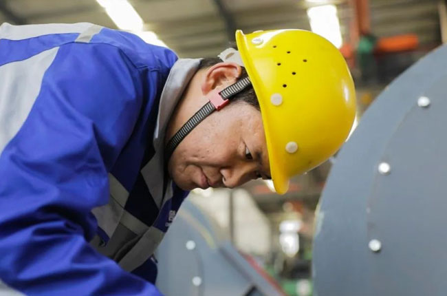 第三事業部組對班組長楊方誼便是一名組對技藝高超者。他不僅具有扎實的圖紙識別、金屬材料分析等理論知識,熟練掌握氣割、鉚焊等實踐操作技能,更對組對工件的尺寸大小、對接縫平整度等處理細節有著頗為嚴格的和要求。“咱組對這一步要是沒做好,不僅耽誤下一道生產工序,還會影響設備質量。所以要保持高度的質量意識,嚴格要求自己!”