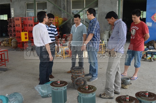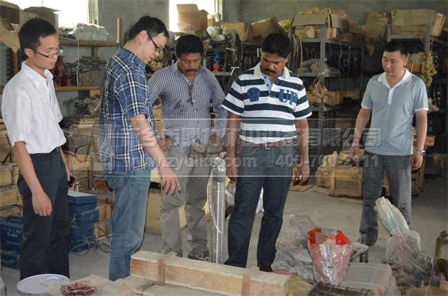7月19日,來自馬來西亞的兩位客戶Mr.Raja和Mr. Bala來我司參觀潛孔鉆機和打樁機。