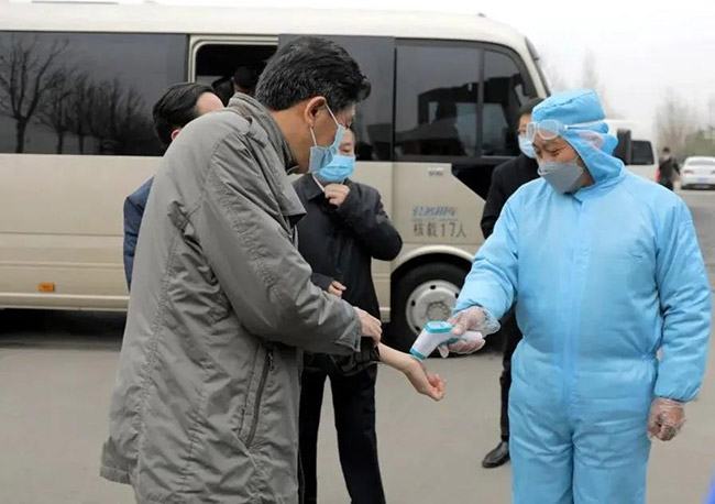 體溫檢測后進入中譽鼎力智能裝備公司廠區