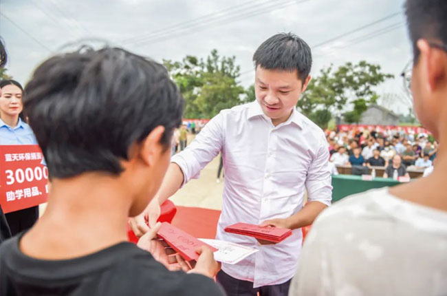 善舉傳播希望,愛心傳承美德。近年來,中譽鼎力及分子公司積投身公益事業,擔當社會責任,在脫貧攻堅、助學助教、疫情防控、防汛救災、關愛老人等方面作出了應有的貢獻。衛輝市藍天環保材料有限公司自建廠以來也投入了560余萬元用于公益事業,抗洪救災發放物資,幫扶太公鎮周邊村莊修路、吃水和慰問困難群眾。此次衛輝市藍天環保材料有限公司的愛心捐贈,是又一次助學圓夢的公益善舉。