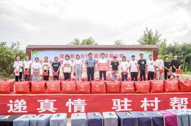今年8月15日,中譽鼎力積響應希望工程活動號召,將愛心資助的12萬元助學金發放到來自衛輝各鄉鎮的40名大學生手中。8月26日,“資助太公鎮古子澗村品學兼優學生活動捐贈儀式”在衛輝市太公鎮古子澗村文化廣場舉行,張治民董事長又代表中譽鼎力分子公司——衛輝市藍天環保材料有限公司對古子澗村31名學生進行愛心物資捐贈。