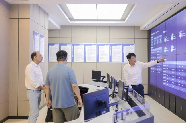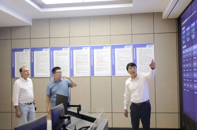 在中譽(yù)鼎力綠色建材大數(shù)據(jù)中心,大衛(wèi)多夫?qū)χ悄艿V山管控平臺(tái)表現(xiàn)出來(lái)濃厚的興趣。李觀本對(duì)客戶提出的問(wèn)題進(jìn)行了專業(yè)的解答。