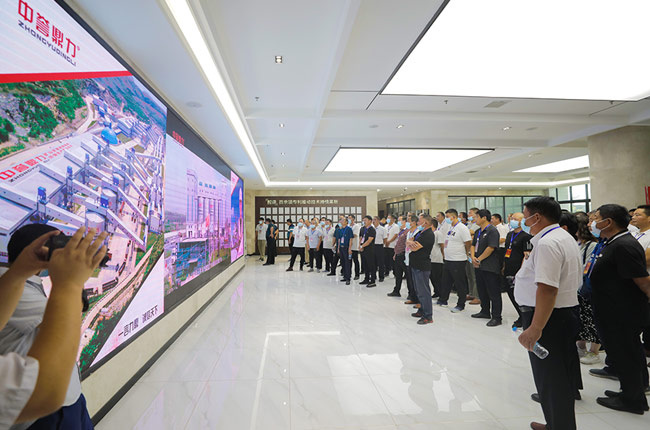 在智能裝備公司綜合辦公樓,考察團先后參觀了中譽鼎力企業(yè)文化墻和多位一體循環(huán)建材產(chǎn)業(yè)園項目沙盤,并觀看了公司相關(guān)宣傳片,對中譽鼎力主營業(yè)務(wù)及近年來發(fā)展情況有了進一步了解。