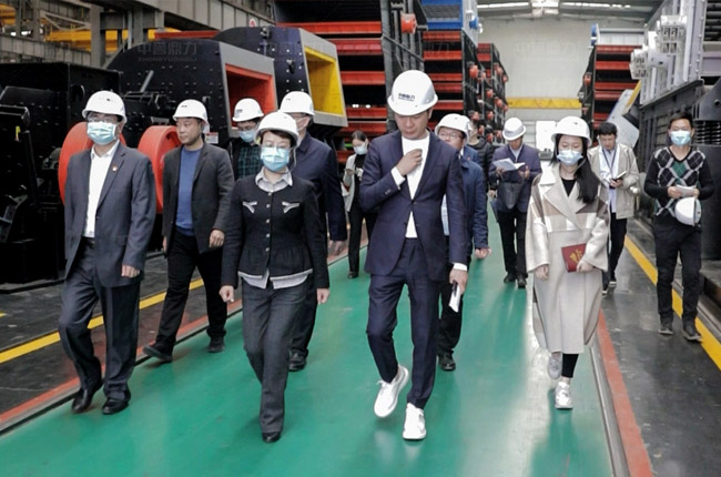 在中譽鼎力智能化一體生產車間,調研領導詳細了解設備研發、生產線建設運營、礦山智能管理系統開發推廣等情況,并勉勵企業要不斷,不斷擴大影響力和競爭力。