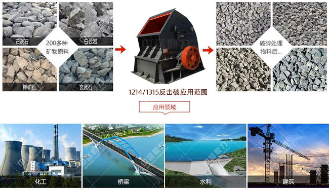 1214/1315反擊破碎機的使用范圍許多,可被用在冶金、選礦、公路、鐵路、城市投建等域發(fā)揮其價值,以下是1214/1315反擊破在選礦、公路等工程項目域運用的例子: