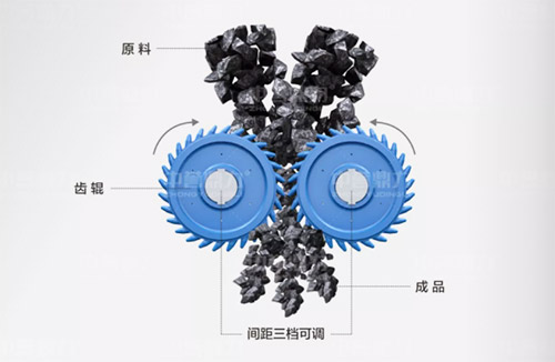 兩個齒輥的間隙設有三擋可調,采用偏心剛性調整方法,使出料粒度保持穩定;