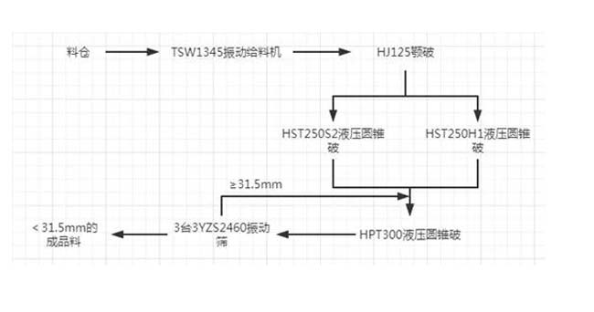主機設備:HST液壓圓錐破碎機、HPT液壓圓錐破碎機、振動給料機、YZS振動篩