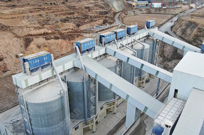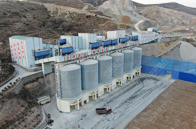 該生產線設計具有多方面優勢特點——,生產程封閉,按照“密閉破碎—密閉輸送—密閉篩分—密閉輸送入庫”的流程進行,避免粉塵外溢,生產噪音;,集石料生產與制砂為一體,兩段式破碎設計,流程順暢,成品料質量高,更具市場優勢;第三,6個鋼板儲料罐(4000噸/個)進行成品料存儲,配備中譽鼎力自助裝車系統,司機刷卡按需裝車,封閉環保、準確。