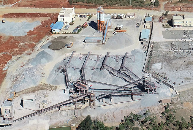 搭配:原料堆、ZSW490*110震動喂料機、HD98鄂破機機、HXGYS400圓錐式破石機(2臺)、2YK2160篩分機械、HVI1250制砂機、2YK2460篩分機械、運送機若干。