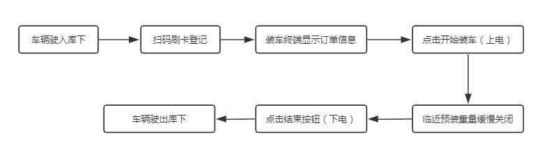 礦山自動裝車系統的硬件設備通常包含地磅、掃碼刷卡器、放料平板、LED屏、車牌識別一體機或中遠距離讀卡器、道閘、聲光報警器、攝像機、紅外對射等。裝車流程:車輛駛入庫下后先掃碼或刷卡登記,然后裝車終端顯示訂單信息,工作人員點擊開始按鈕,設備上電,可以始裝車,到臨近預裝重量時,裝車機逐漸關閉,直至到達預裝重量點結束裝車按鈕,結束裝車,車輛駛出即可